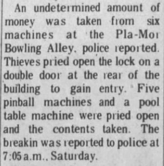 | Names: | Pla-Mor Bowl (1960 - 196?) Pla Mor Bowl (196? - 198?) Pla Mor Lanes (198? - present) |